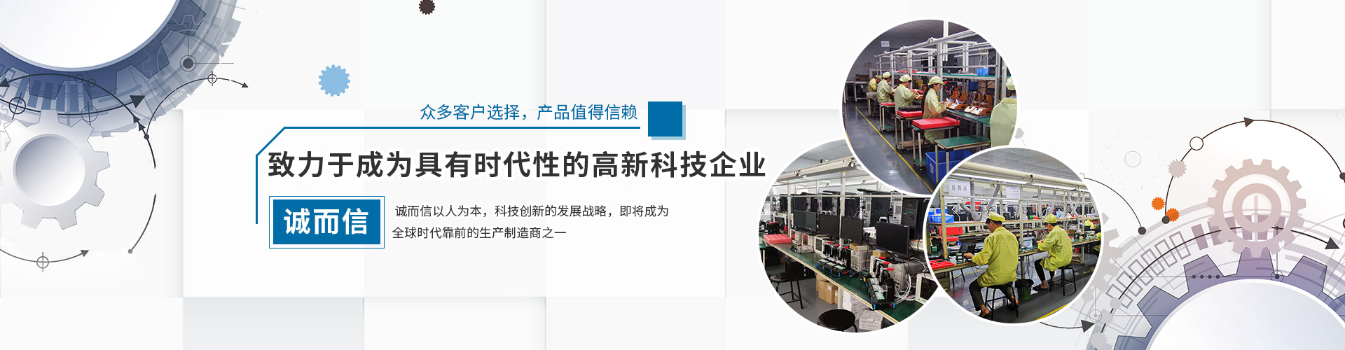 誠(chéng)而信現(xiàn)擁有多條技術(shù)先進(jìn)、配套完善的JUKI、YAMAHA全自動(dòng)SMT生產(chǎn)線,全套標(biāo)準(zhǔn)組裝線,生產(chǎn)能力直線上升,可年產(chǎn)平板電腦、攝像頭、MP5等電子產(chǎn)品數(shù)百萬(wàn)臺(tái)。